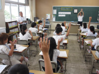 外国語 2024年9月18日 11時13分 5年生が外国語の授業をしています。 隠されたカードを言い当てるよ。 What time do you get up? I get up at 5:00 am. 誰が一番早起きかな?