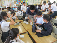 2024年7月18日 12時16分6年生が理科で田んぼの水を観察しています。